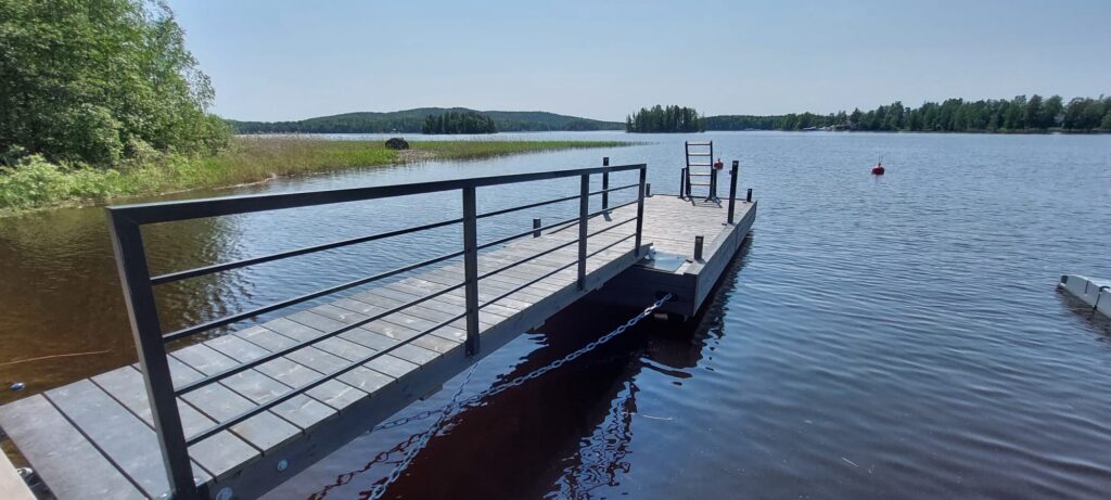 Järeät putkiponttonilaiturit ovat kestävä ja vakaa ratkaisu vaativiin olosuhteisiin. Suunniteltu etenkin venelaituriksi, mutta soveltuu myös uimiseen ja oleskeluun.